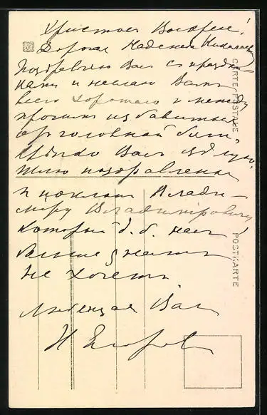 Personenbezogene Daten auf der Rückseite der Karte wurden durch blauen Textmarker unkenntlich gemacht. Die blauen Stellen sind auf die Vorderseite durchgeweicht und wirken sich negativ auf das Postkartenfoto aus