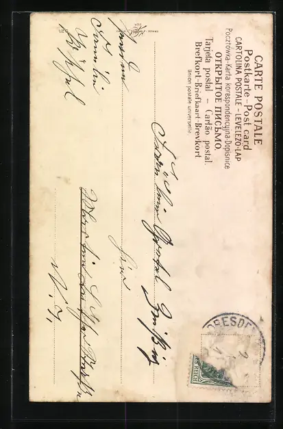 alte Ansichtskarte, gelaufen, Briefmarke entfernt, guter Zustand