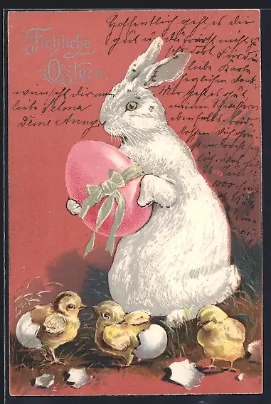AK Osterhase mit Osterküken, Fröhliche Ostern