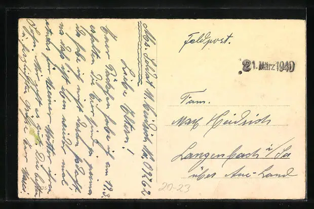 alte Ansichtskarte, gelaufen 1940 als Feldpost, guter Zustand