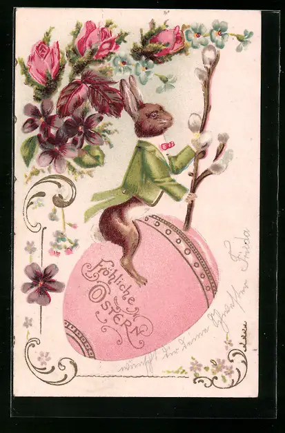 AK Osterhase reitet auf einem Osterei