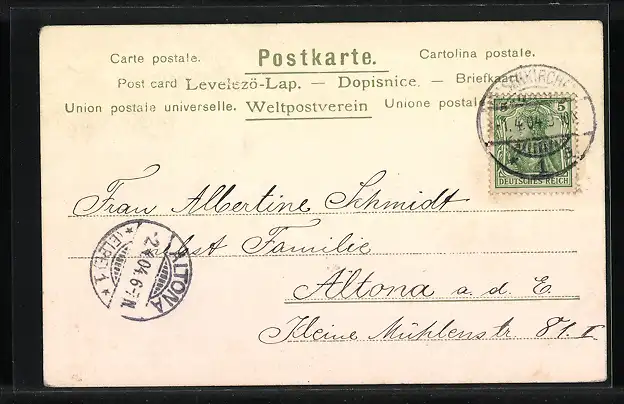 alte Ansichtskarte, gelaufen 1904, guter Zustand