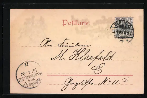 alte Ansichtskarte, gelaufen 1900, guter Zustand