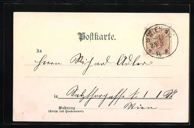Personenbezogene Daten auf der Rückseite der Karte wurden durch blauen Textmarker unkenntlich gemacht. Die blauen Stellen sind auf die Vorderseite durchgeweicht und wirken sich negativ auf das Postkartenfoto aus