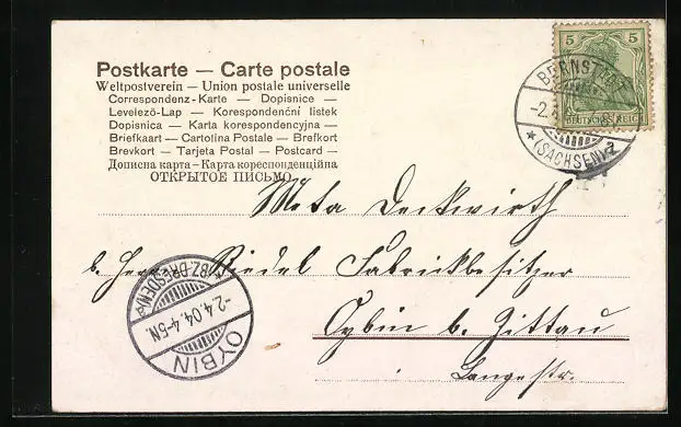 alte Ansichtskarte, gelaufen 1904, guter Zustand
