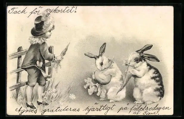 AK Osterhasen knabbern an Rübe und Möhre