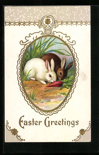 AK Osterhasen knabbern an einer Rübe