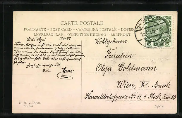 alte Ansichtskarte, gelaufen 1908, Stempelspur, guter Zustand
