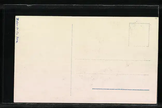 Personenbezogene Daten auf der Rückseite der Karte wurden durch blauen Textmarker unkenntlich gemacht. Die blauen Stellen sind auf die Vorderseite durchgeweicht und wirken sich negativ auf das Postkartenfoto aus