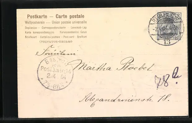 alte Ansichtskarte, gelaufen 1904, guter Zustand