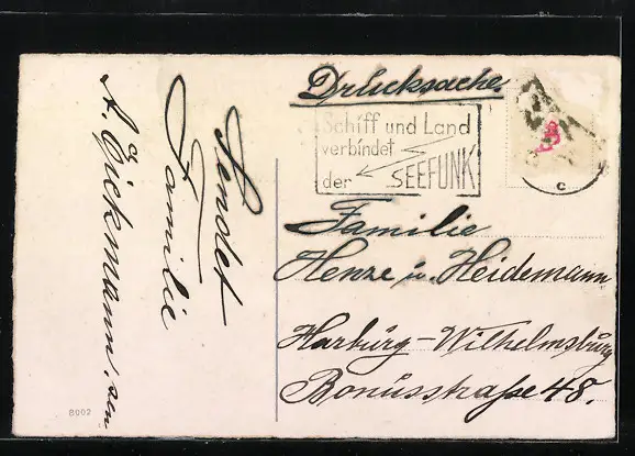 alte Ansichtskarte, gelaufen, Briefmarke entfernt, guter Zustand