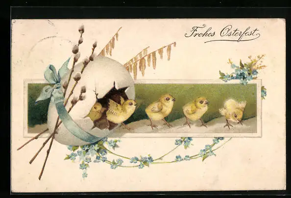 AK Osterküken hüpfen aus Ei
