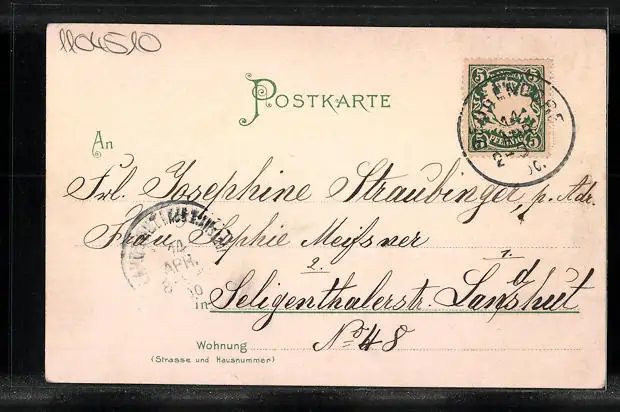 alte Ansichtskarte, gelaufen 1900, Einriss oben mittig, guter Zustand