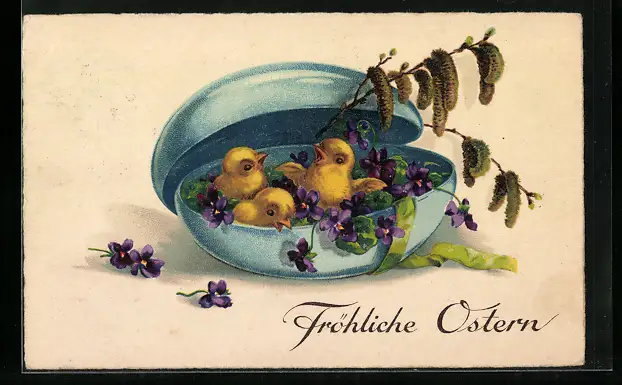 AK Osterküken in einem Ei