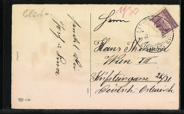 alte Ansichtskarte, gelaufen, Briefmarke entfernt, guter Zustand