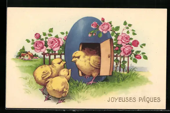 AK Osterküken in einem Eierhaus