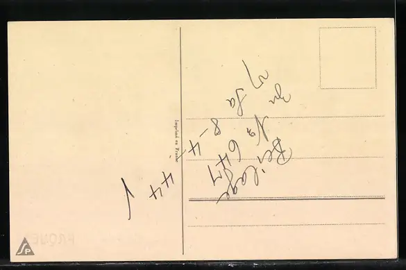 Personenbezogene Daten auf der Rückseite der Karte wurden durch blauen Textmarker unkenntlich gemacht. Die blauen Stellen sind auf die Vorderseite durchgeweicht und wirken sich negativ auf das Postkartenfoto aus