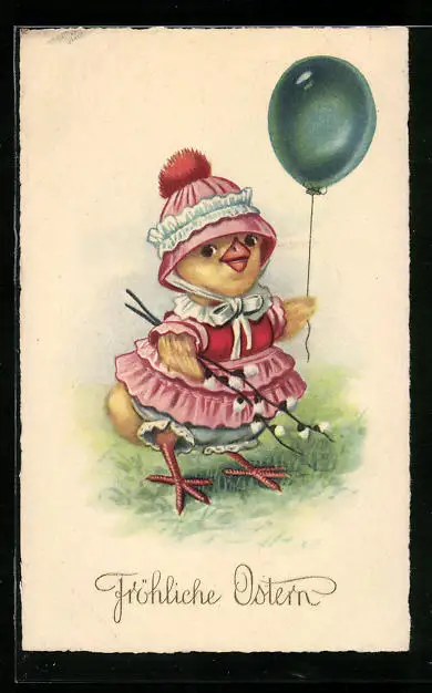 AK Osterküken mit Luftballon