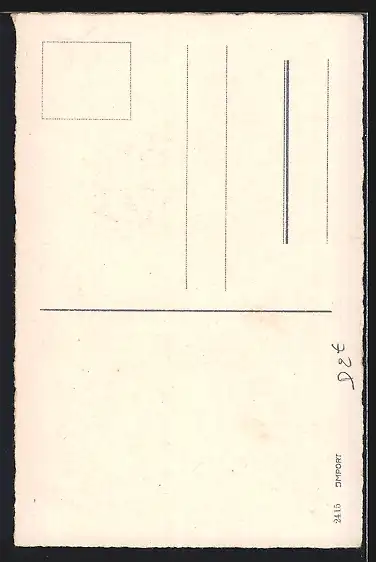 Personenbezogene Daten auf der Rückseite der Karte wurden durch blauen Textmarker unkenntlich gemacht. Die blauen Stellen sind auf die Vorderseite durchgeweicht und wirken sich negativ auf das Postkartenfoto aus