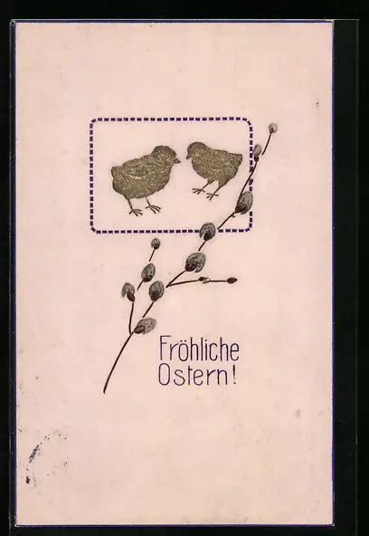 AK Osterküken mit Palmkätzchenzweig