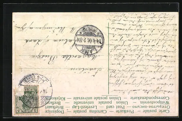 alte Ansichtskarte, gelaufen, Briefmarke eingerissen, guter Zustand