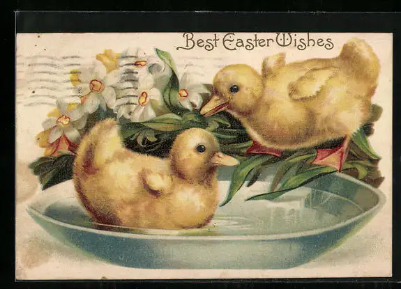 AK Osterküken schwimmen in einer Schale