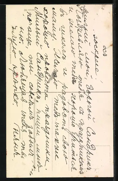 Personenbezogene Daten auf der Rückseite der Karte wurden durch blauen Textmarker unkenntlich gemacht. Die blauen Stellen sind auf die Vorderseite durchgeweicht und wirken sich negativ auf das Postkartenfoto aus