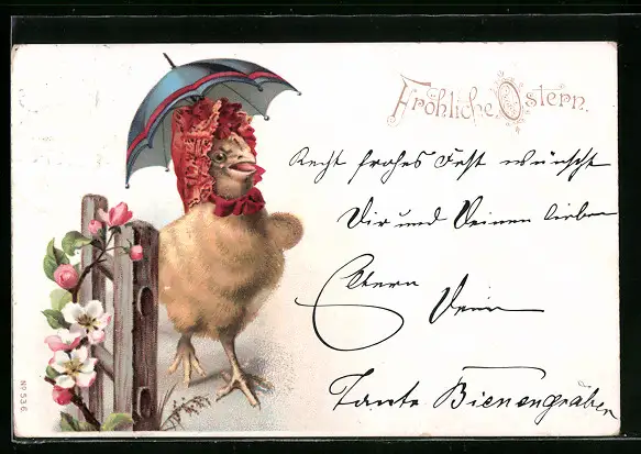 AK Osterküken unter dem Schirm