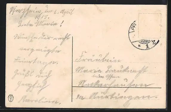 alte Ansichtskarte, gelaufen, Briefmarke entfernt, guter Zustand