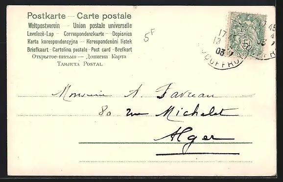 alte Ansichtskarte, gelaufen 1903, Stempelspur, guter Zustand