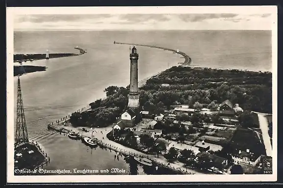 AK Osternothafen, Gesamtansicht mit Leuchtturm aus der Vogelschau