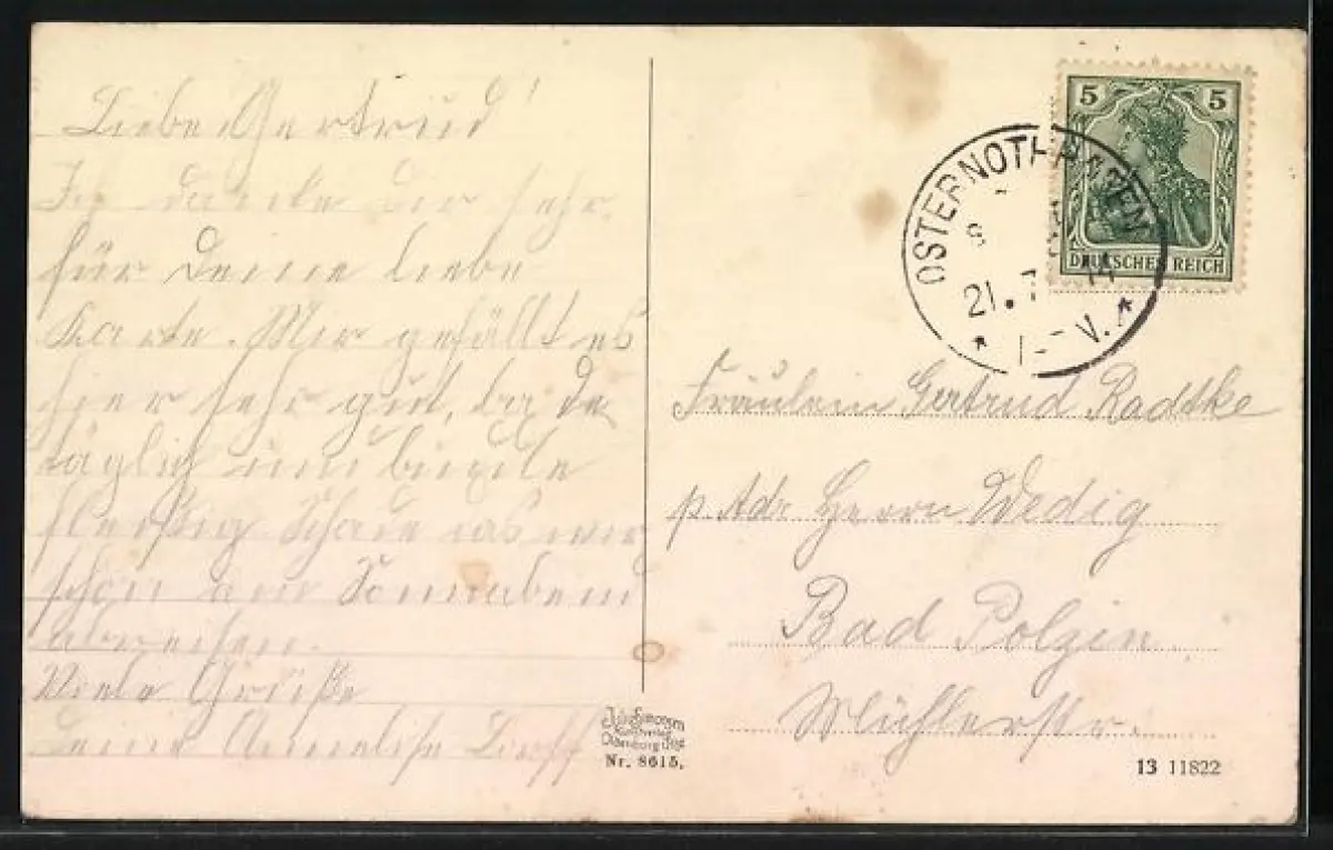 alte Ansichtskarte, gelaufen 1911, Eckknick li. oben, guter Zustand