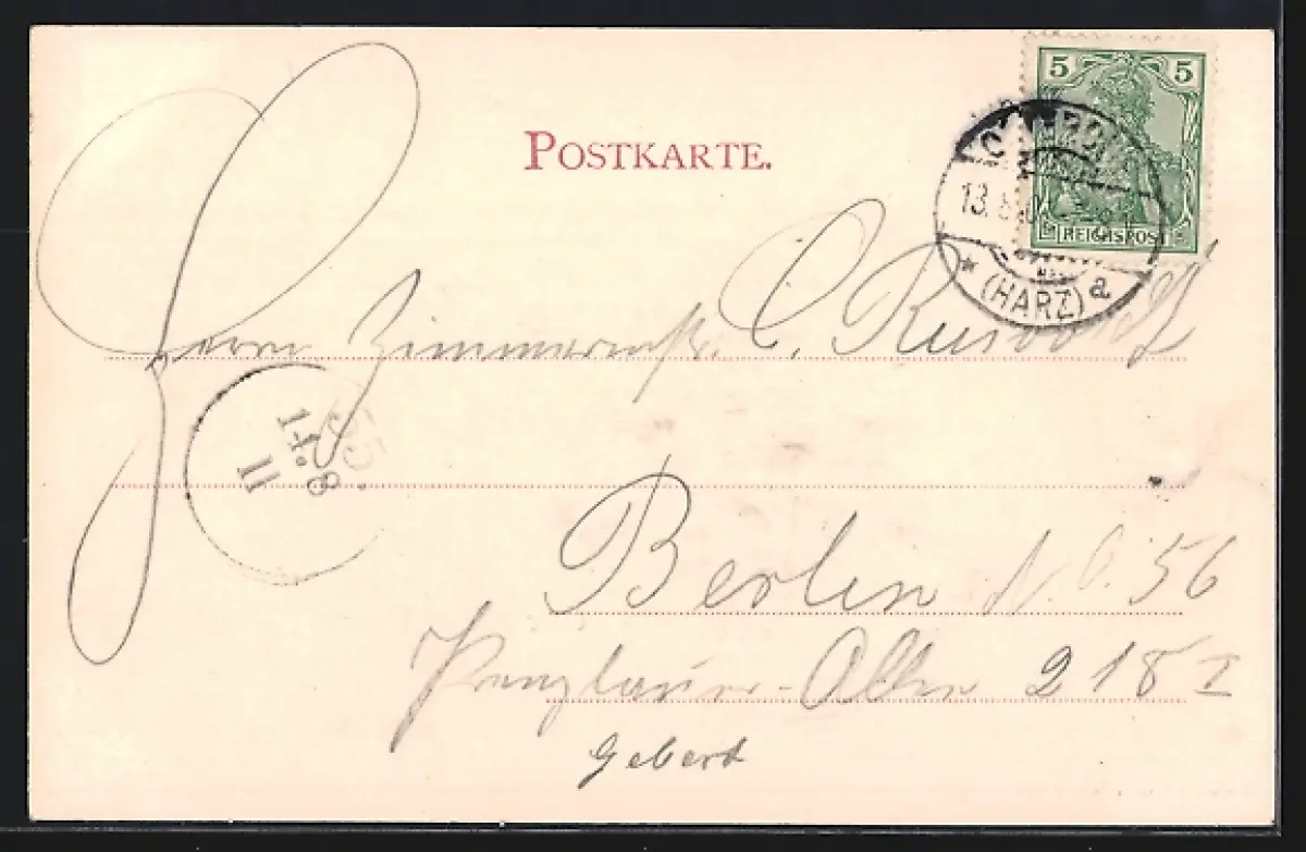 alte Ansichtskarte, gelaufen 1901, Stempelspur, guter Zustand