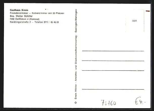 AK Ostfildern /Kemnat, Gasthaus Krone, Bes. Walter Schäfer, Neidlingerstrasse 2
