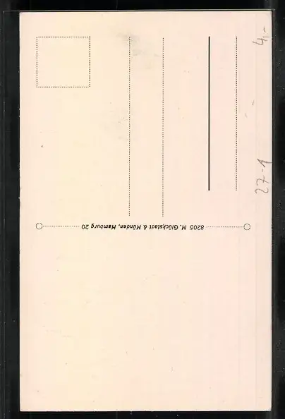 Personenbezogene Daten auf der Rückseite der Karte wurden durch blauen Textmarker unkenntlich gemacht. Die blauen Stellen sind auf die Vorderseite durchgeweicht und wirken sich negativ auf das Postkartenfoto aus