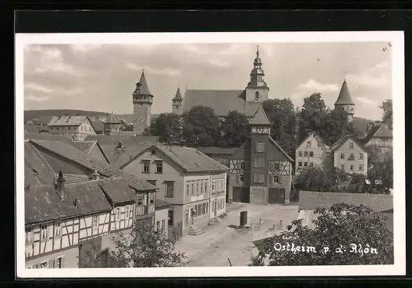 AK Ostheim v. d. Rhön, Ortspartie mit Kirche