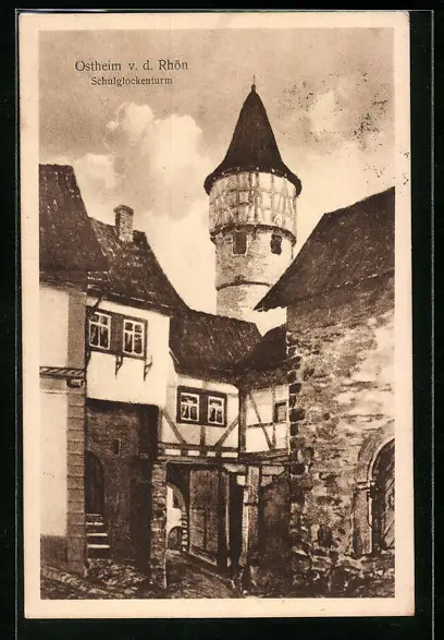 AK Ostheim v. d. Rhön, Ortspartie mit Schulglockenturm