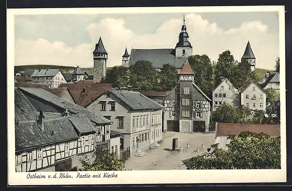 AK Ostheim v. d. Rhön, Strassenpartie mit Kirche