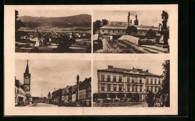 AK Ostrov, Strassenpartie mit Denkmal, Gebäudeansicht, Ortspartie