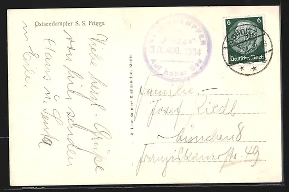 AK Ostsee-Dampfer SS Frigga unter Volldampf