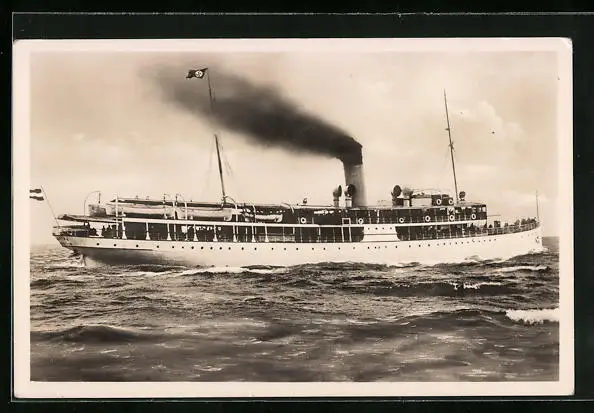 AK Ostsee-Dampfer SS Hertha gibt Volldampf