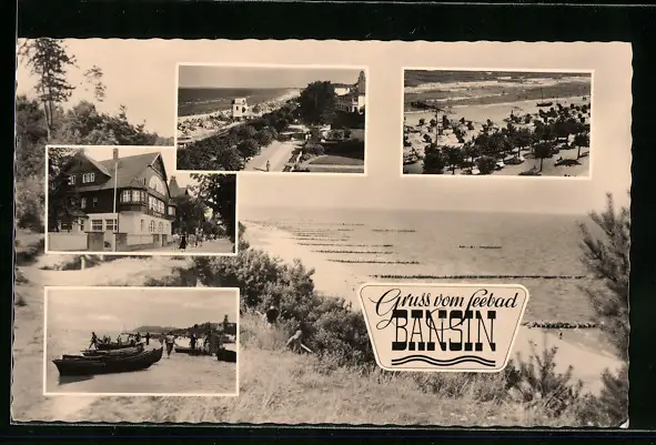 AK Ostseebad Bansin, Fünf Ansichten von Strand und Ort
