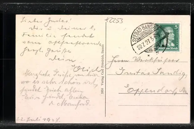 alte Ansichtskarte, gelaufen 1927, guter Zustand