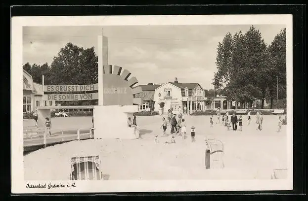 AK Ostseebad Grömitz, Ortspartie mit Strand