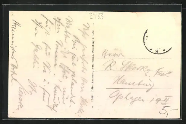 alte Ansichtskarte, gelaufen, Briefmarke entfernt, guter Zustand