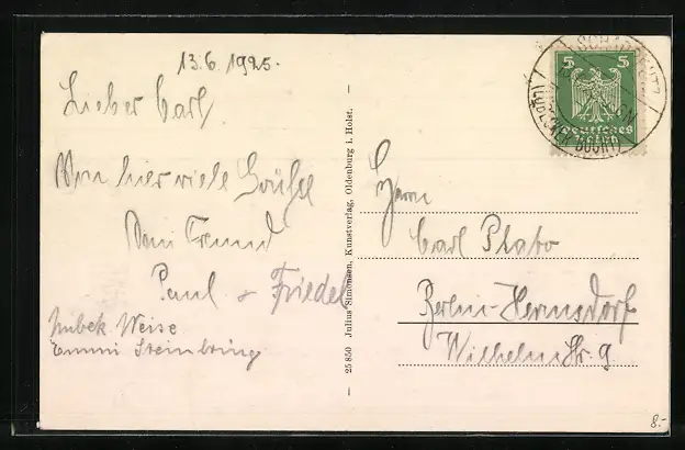alte Ansichtskarte, gelaufen 1925, guter Zustand