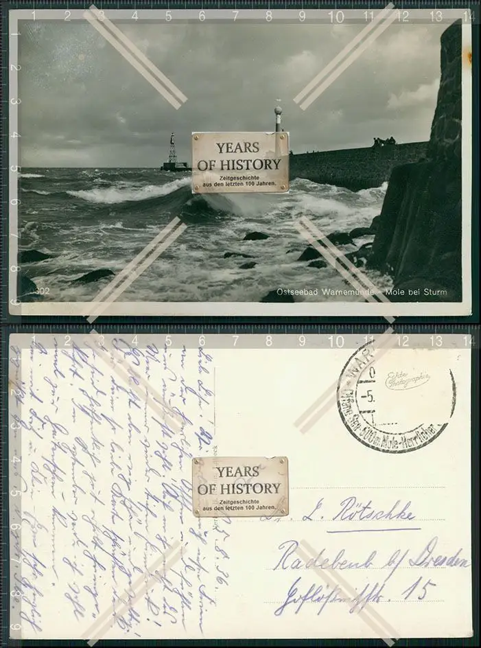 AK Ostseebad Warnemünde Mole bei Sturm M2023-07-12-020AK Ostseebad Warnemünde Mole bei Sturm