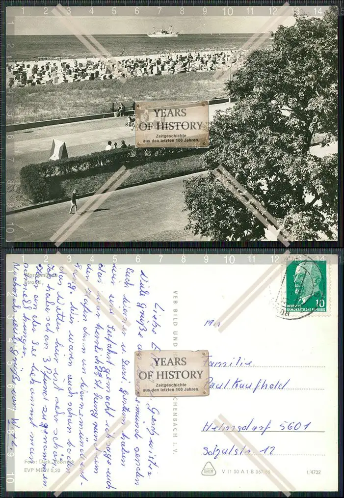 AK Ostseebad Warnemünde Rostock Strand Strandkörbe Fährschiff Promenade