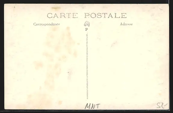 Personenbezogene Daten auf der Rückseite der Karte wurden durch blauen Textmarker unkenntlich gemacht. Die blauen Stellen sind auf die Vorderseite durchgeweicht und wirken sich negativ auf das Postkartenfoto aus