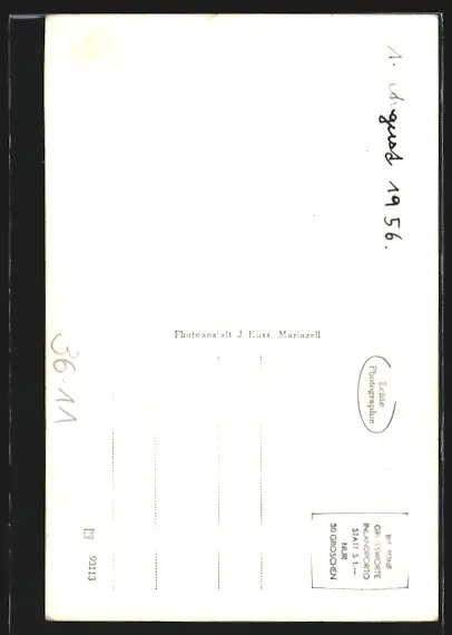 Personenbezogene Daten auf der Rückseite der Karte wurden durch blauen Textmarker unkenntlich gemacht. Die blauen Stellen sind auf die Vorderseite durchgeweicht und wirken sich negativ auf das Postkartenfoto aus